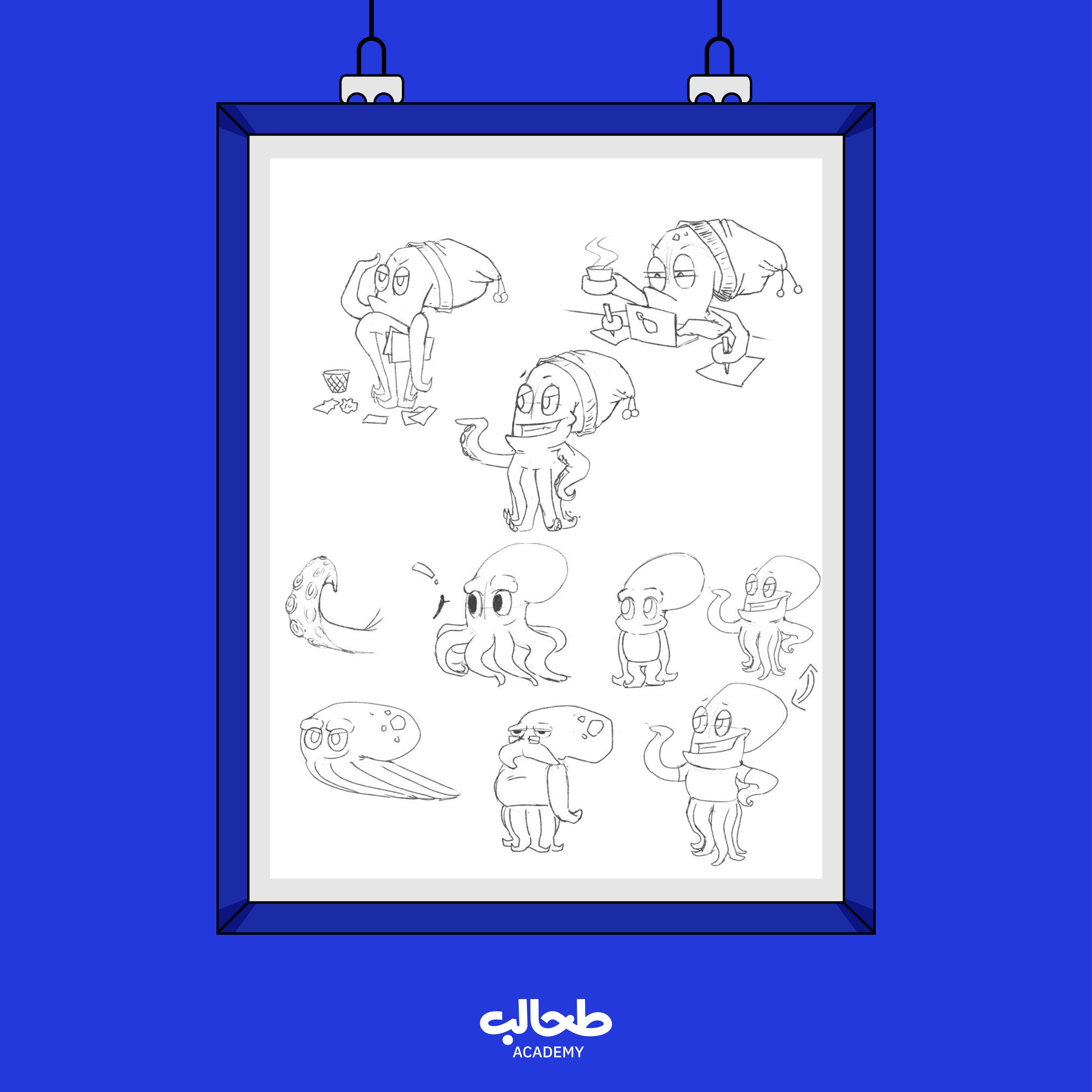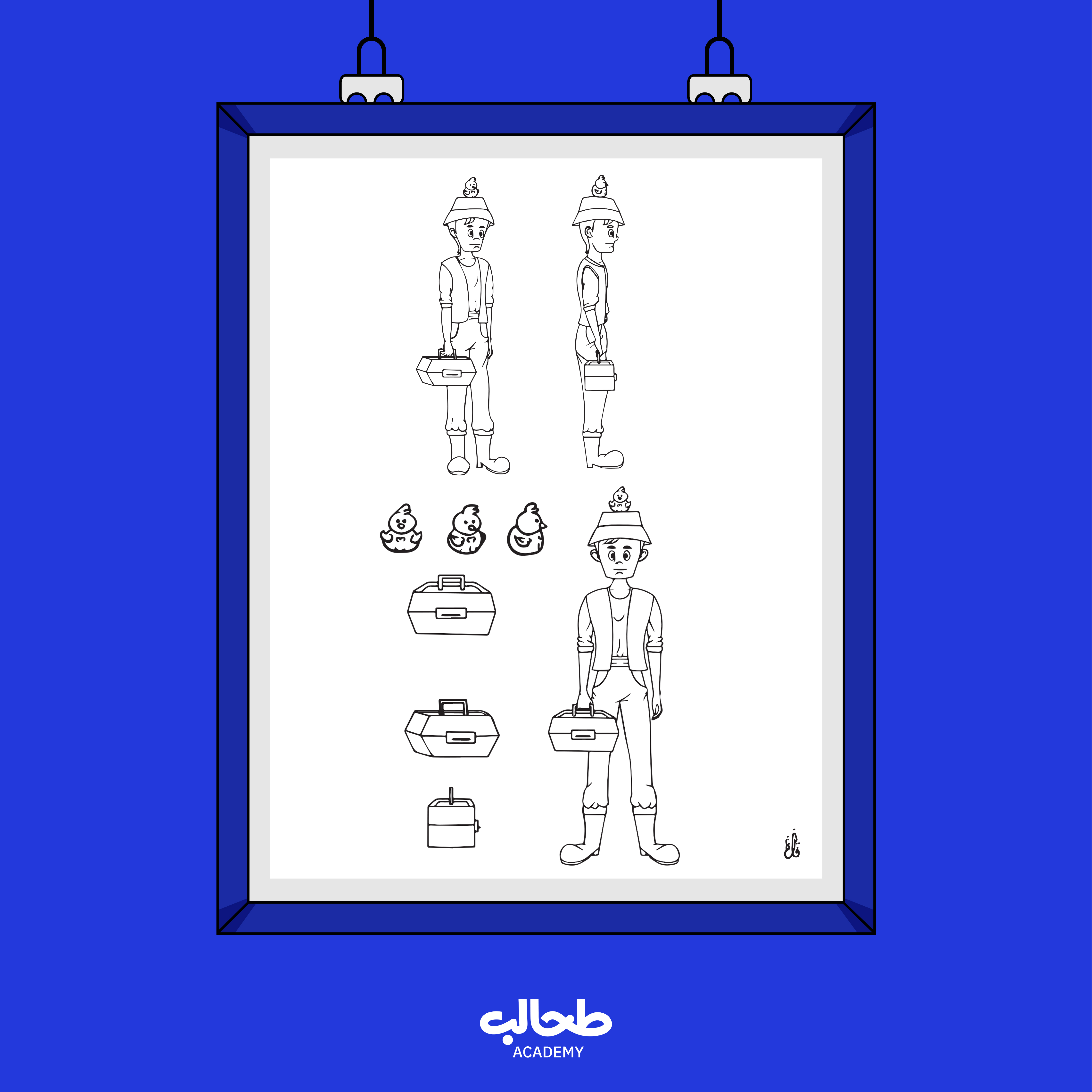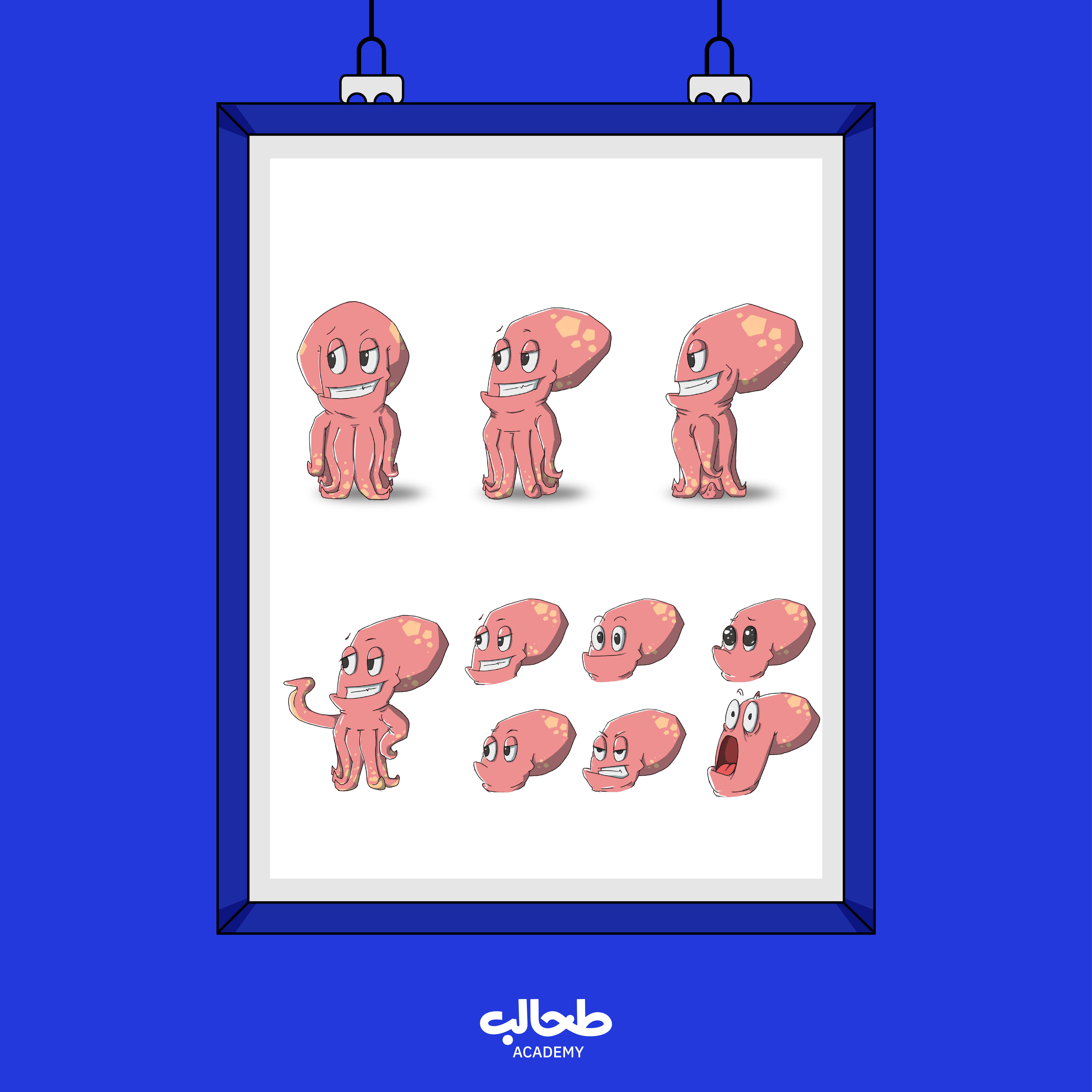 • 2- عمل الإخراج النهائي للشخصية المصممة بكل عناصرها: ( sheet model- emotion sheet - action sheet )